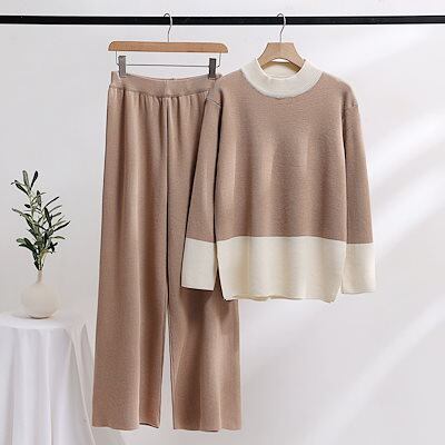 2025新作 韓国風ニットセットアップ 2点セット パンツ レディース 秋 冬 長袖 ニットパンツ ワイドパンツ クルーネック セータートップス 上下セット 大人カジュアル シンプル ゆったり可愛い