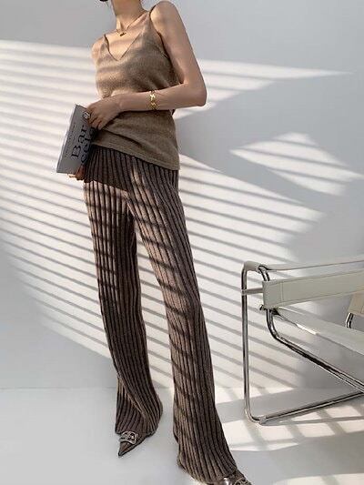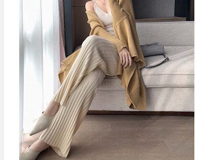 ニットパンツ フレアパンツ レディース パンツ ボトムス リブニット 春 秋 ゆったり ワンマイルウェア 大人 ニットフレアパンツ 春秋 イージーパンツ フレアパンツ おしゃれ きれいめ カジュアル