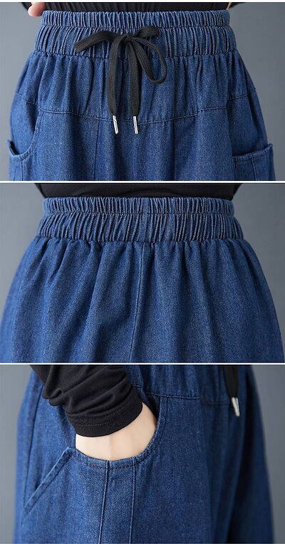 ジーンズ ロングパンツ スカーチョ デニム ワイドパンツ デニム イージーパンツ デニムパンツ デニムスカーチョ レディース きれいめ 股上深め 大きいサイズ 春夏秋冬 フレアパンツ ゆったりシルエッ