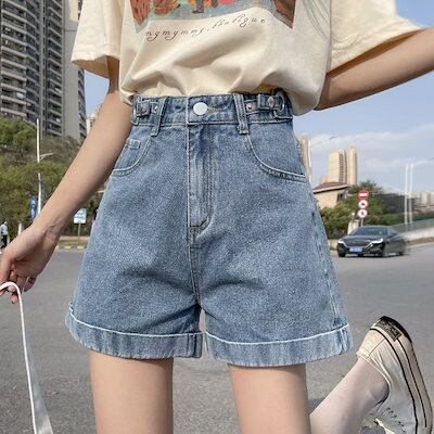 ショートパンツ デニム 24 ハイウエスト ジーンズ ワイドパンツ レディース フレアパンツ ショート