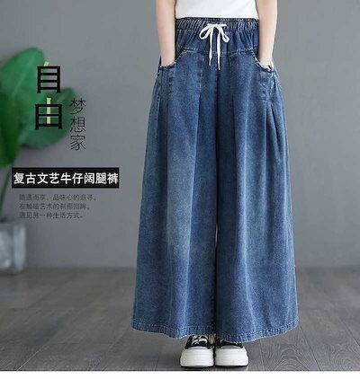 「ファットガール」 24 デニムワイドパンツ キュロットスカート フレアー レトロ ゴム ハイウエスト 体型カバー 大きいサイズ ゆったり レディース