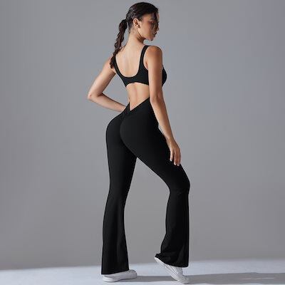 ホローアウト 背中 ワンピース スポーツ フィットネスウェア フレアパンツ ワンピース ヨガ レディース