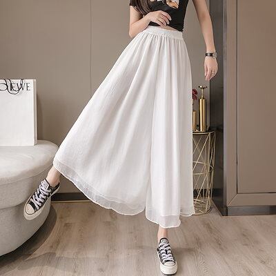 スラックスパンツ 母の日 韓国ファッションシフォンパンツ レディース ハイウエストパンツ 薄手 ワイドパンツ ロングパンツ