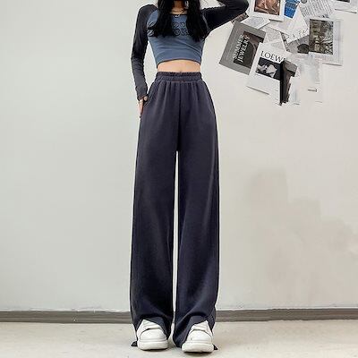 スラックスパンツ 韓国ファッション ゆったり 着痩せ スリットパンツ 薄手 夏 ハイウエスト ストレート ワイドパンツ レディース ロングパンツ