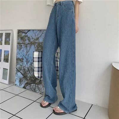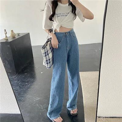 ひんやりボトムス 脚長効果!スキニーパンツ デニムボトムス スキニーパンツ ワイドパンツ 韓国ファッション デニムパンツ リブ ズボン ゆったり 着やせ 百掛け ハイウエスト ボトムス レディース ハ
