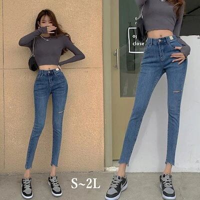 ダメージパンツ レディース レギンスパンツ デニムパンツ ジーンズ ズボン ボトムス ダメージ ジーパン フィットスキニー レギパン スキニー 9分丈 細身 美脚 春 夏 S M L 2L