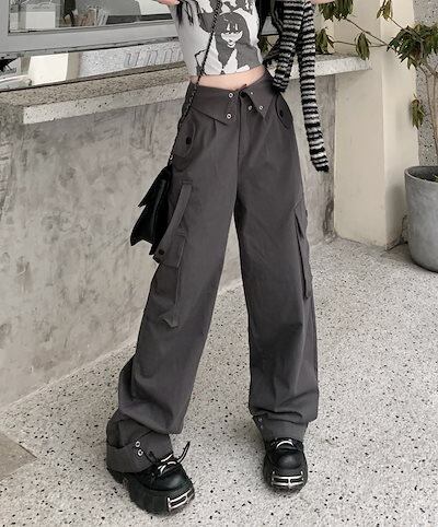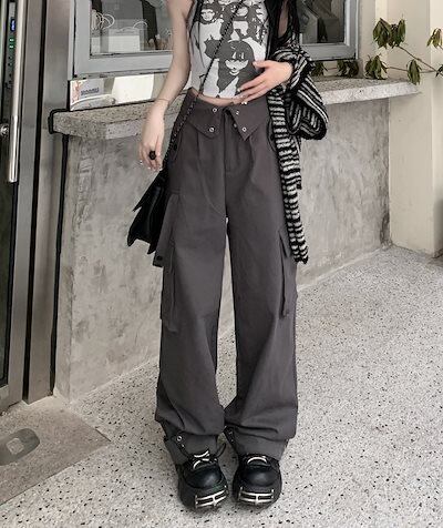 マルチポケット 着? カーゴパンツ レディース オーバーオール レディース ピンク シンプルハイウエストストレートワイドレッグパンツズボン 無地 襟無 春 夏 ファッション