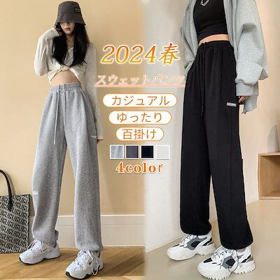 2024春 新作 ワイドパンツ スウェットパンツ 運動 カジュアル ドローストリングパンツ ストレート レディース 韓国ファッション ズボン カジュアル お肌に優しい 快適