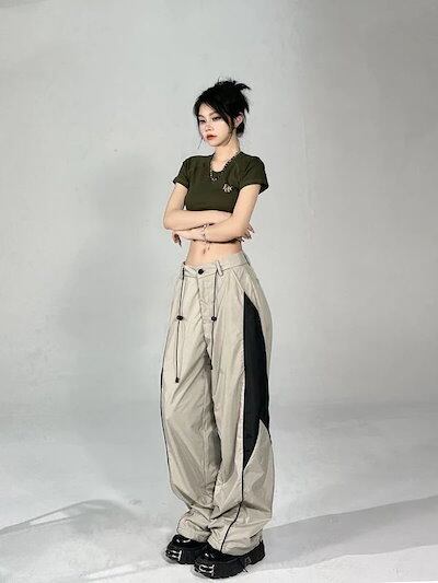 レディース ミリタリーパンツ ワイドパンツ ハイウエスト ダンス衣装 カーゴパンツ カジュアル ハイウエスト スラックス 切り替え ストレートパンツ ドレープ感 ワイドパンツ ゆったり