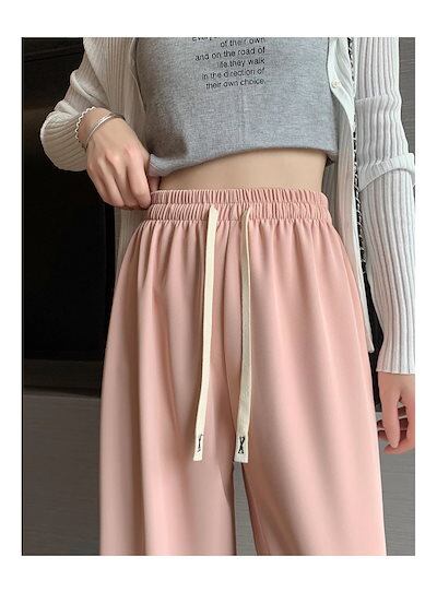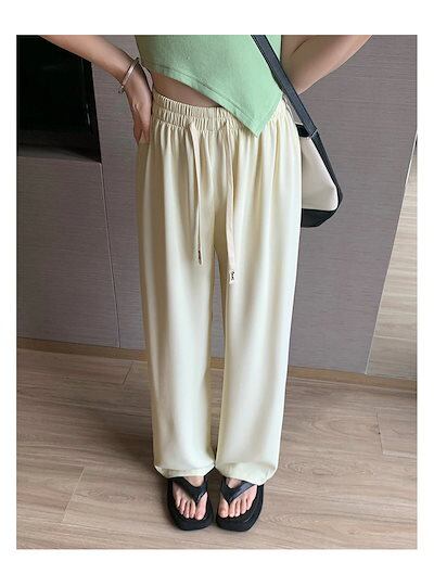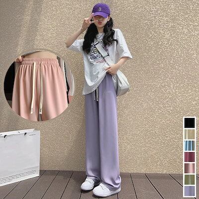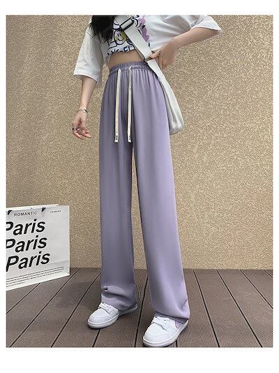 スーツパンツ 薄手 夏 ハイウエスト 巾着 ゴムウエスト ストレート ワイドパンツ レディース ロングパンツ 日焼け止め ジャージ ズボン メガ割 美脚 四節適用着痩せ脚長効果