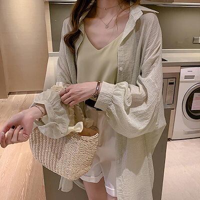 リボン ブラウス リボン マウンテンパーカー シアーシャツ カーディガンシフォン UVカット夏服 Tシャツ ストライプ uvカットパーカー 薄手レディース 体型カバー 長袖日焼け止め 韓国ファッ