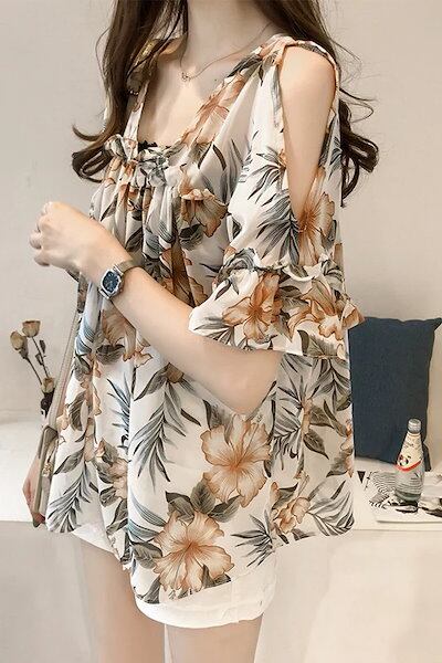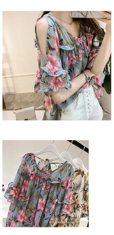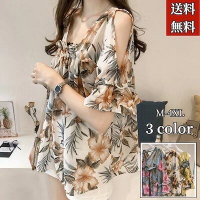 リボン ブラウス リボン マウンテンパーカー シアーシャツ カーディガンシフォン UVカット 夏 トップス 百掛け tシャツ 半袖 レディース 花柄 シフォン 韓国ファッション ゆったり シ