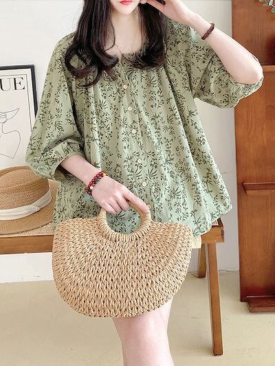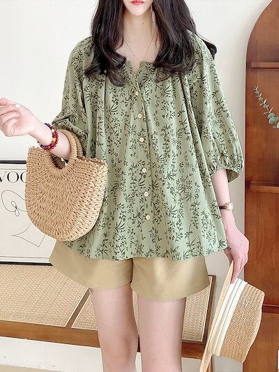 リボン ブラウス リボン マウンテンパーカー シアーシャツ カーディガン夏新作 可愛い レディース 甘いで ドールシャツ Vネック ランタン袖 七分袖 Tシャツ ゆったり 体型カバー?韓国ファッ