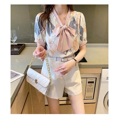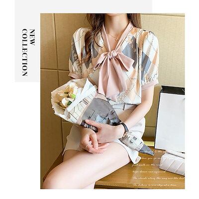 ブラウス レディース 40代 春夏新作 オシャレブラウス シフォンシャツ 半袖トップス リボンVネック ブラウス 大人上品 通勤OL ゆったり シャツ30代 50代