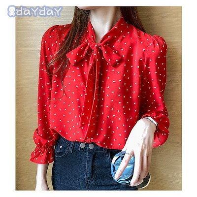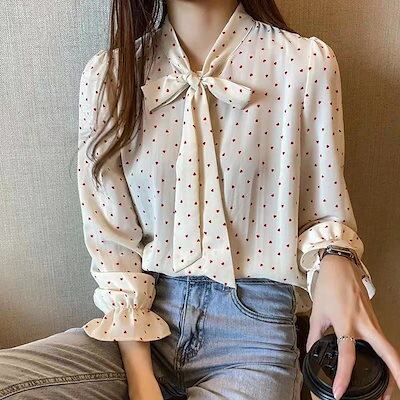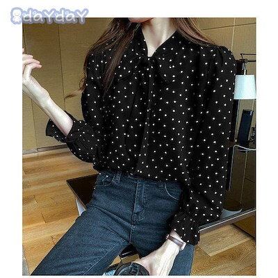 ブラウス レディース 40代 秋 新作 シフォンブラウス 長袖トップス オシャレ ドット柄ブラウス リボン Vネック 韓国風 大きいサイズ 着痩せ 通勤 大人可愛い