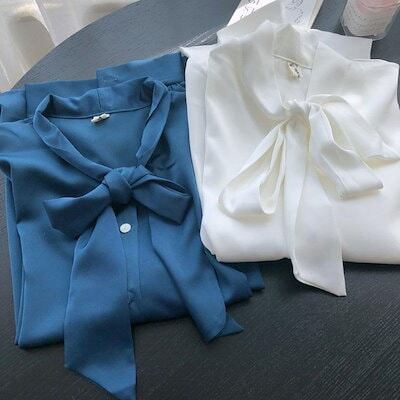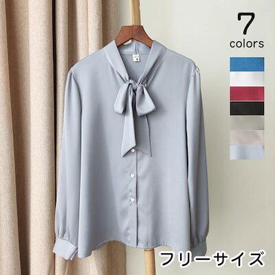 203040レディースシャツブラウス春リボン付き長袖通勤韓国風トップス着痩せオフィスきれいめオシャレ大人ゆったり