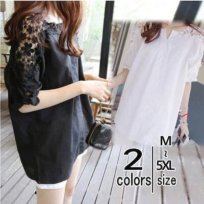 tシャツTシャツシャツブラウス半袖肩レース透け感トップススキッパーレースリボン五分袖花柄無地レディース