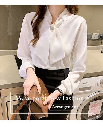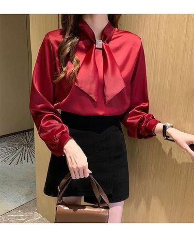 ボウタイブラウス長袖ブラウスボウタイシャツブラウスとろみシャツレディースブラウスレディースきれいめ40秋作オシャレブラウスシルク風シャツ長袖トップスリボンVネックブラウス大人通勤ゆったりシャツ3050