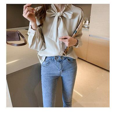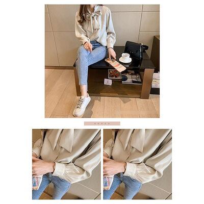 ブラウス レディース きれいめ 40代 春秋 上品 リボンネックブラウス シャツ シルク風トップス 長袖 韓国風 トップス 大きいサイズ 大人 Tシャツ オシャレ 4色