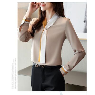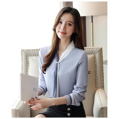 ブラウス レディース きれいめ 40代 春秋新作 長袖トップス 白オシャレブラウス シルク風シャツ リボンVネック 上品 大人 通勤 ゆったり シャツ30代 50代