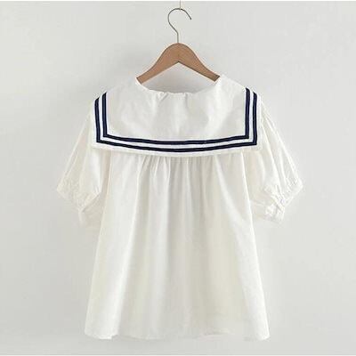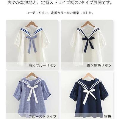 新品の買い占め セーラーカラー シャツ ブラウス レディース 半袖 綿 tシャツ 無地 白 リボン付き シャツブラウス 半袖 レディース 春 夏 tシャツ