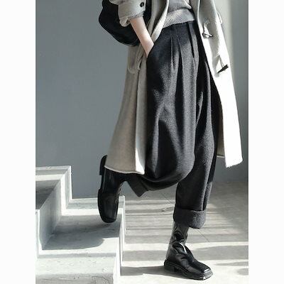パンツ 秋冬 カジュアルストレートパンツ 快適なワイドパンツ ハーレムパンツ レディース ファッション 体型カバー OL 通勤 ラシャスーツパンツ