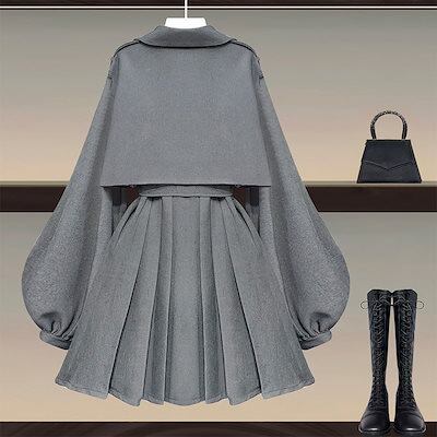 2025 トレンチコート ワンピース アウター ワンピ プリーツスカート コート アウター ベルト レディースジャケット AWアウター