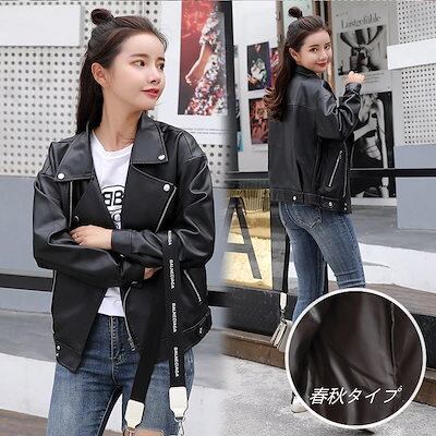 「即納」 春/冬2タイプ ライダース 上質 PUレザー 薄手/厚手 2タイプ ゆったり レディ ジャケット 革ジャン レディース 裏起毛 韓国ファション コート アウター メガ割