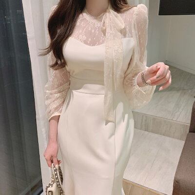 韓国chicの春のフレンチ 優しいワンピース セレブ レディース 長袖 ワンピース 通勤 OL ファッション 新品追加