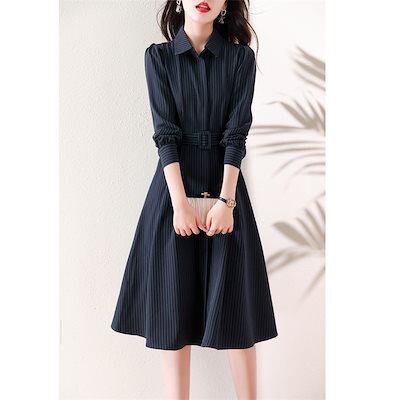 2025の早春新作 ワンピース レディース ブルーのストライプワンピースカジュアルシンプル通勤 OL ファッション 新品追加