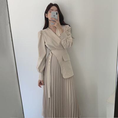 2025の早春新作 ワンピース レディースchicフレンチVネック ワンピースシンプル 通勤 OL ファッション 新品追加