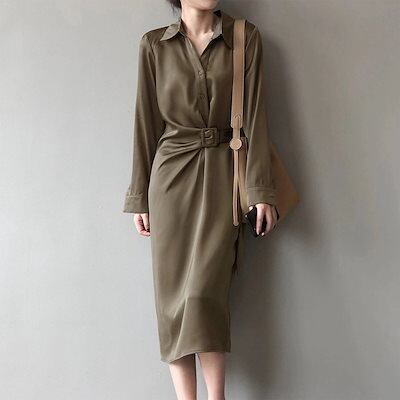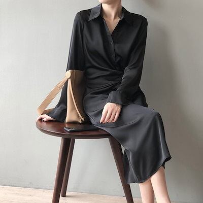 2025の早春新作 ワンピース レディース サテンシャツの長袖ワンピース カジュアルシンプル デザイン感 通勤 OL ファッション 新品追加