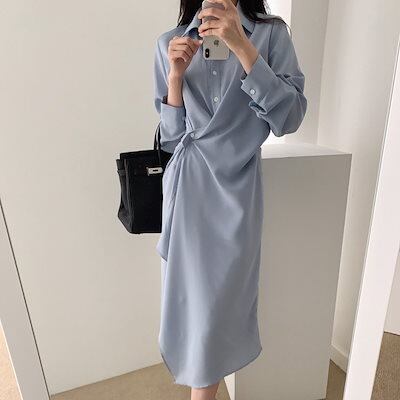 2025の早春新作 デザイン感 ワンピースレディース 通勤シャツ ワンピース OL シンプル フレンチ 長袖ファッション 新品追加