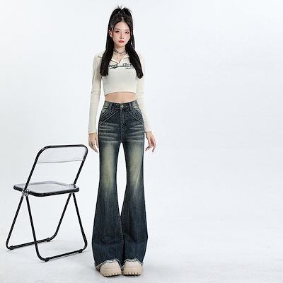 デニムかっこいい!スラックスパンツ2025春 ブラック マイクロラッパ デニムパンツ おしゃれ ハイウエストゆったり見えやせ パンツ レディース 垂れ感 ワイドパンツ