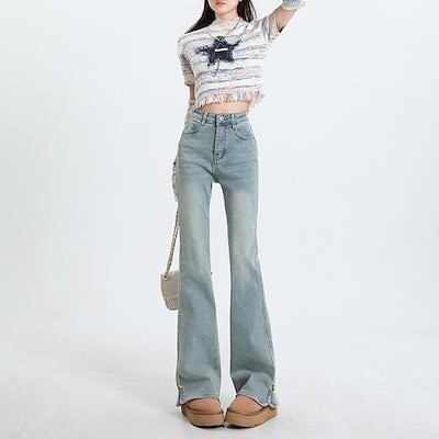 デニムかっこいい!スラックスパンツ2025春 ワイドパンツ デニムパンツ カジュアル ハイウエストゆったり見えやせ マイクロラッパ パンツ レディース