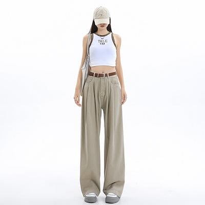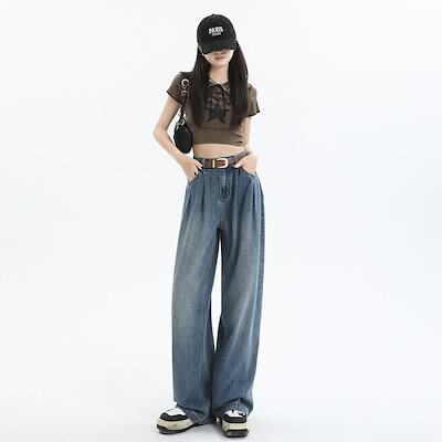 デニムかっこいい!スラックスパンツ2025春 しわだらけのワイドパンツ デニムパンツ おしゃれ ハイウエストゆったり見えやせ パンツ レディース