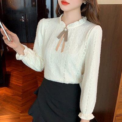 今っぽシアーシャツ 2025 裹起毛 ファッション ハーフハイネック レースシャツレディース トップス の洋風 ブラウス OL 通勤 デザイン感