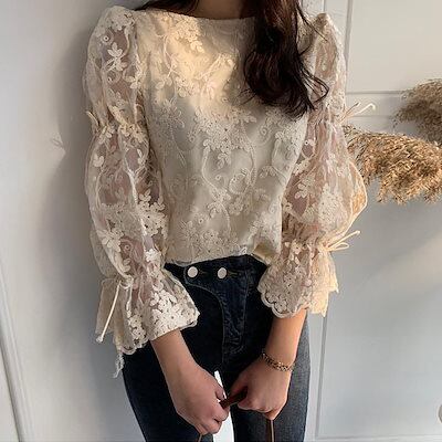 今っぽシアーシャツ 2025 ファッションレース 刺繍のトップスシフォンシャツ トップス レディースのブラウス OL 通勤