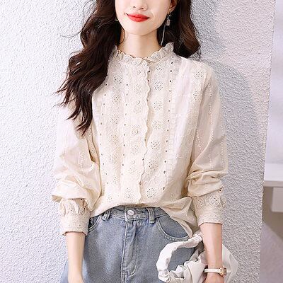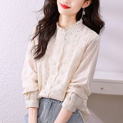 今っぽシアーシャツ 2025 ファッション レースシャツレディース トップス 刺繍 のブラウス OL 通勤 デザイン感