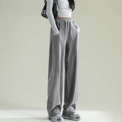 ニットパンツ ワイドパンツ レディース 秋冬 新 ハイウエスト 垂れ感 ゆったり 百掛け ストレートパンツ カジュアル 運動ズボン