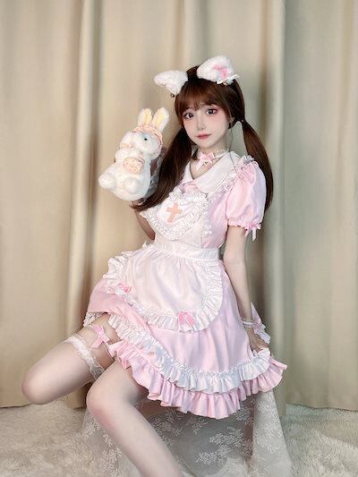 7点セット メイドが大きくて可愛いロリータの優しい女の子ワンピースメイド制服二次元コスプレ服ロリータ萌え