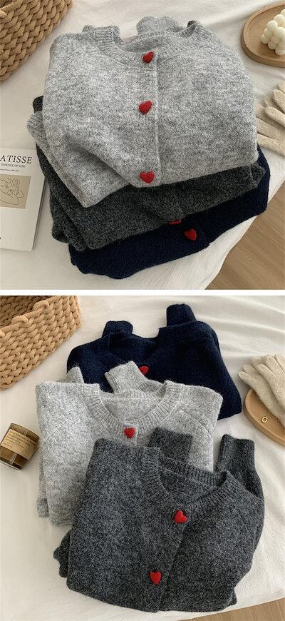 ニットカーディガン レディース 春 秋 冬 ニット カーディガン 秋冬 ライトコート トップス もこもこ ニット 柔らかい シンプル クルーネック ハートボタン 重ね着 羽織り 大きいサイズ ゆったり
