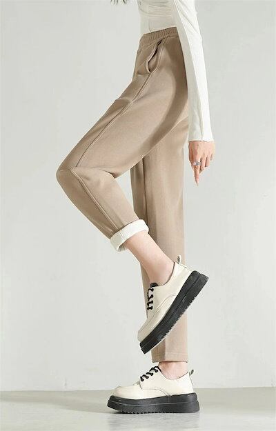裏起毛 テーパードパンツ ロングパンツ パンツ レディース 裏ボア パンツ ムス 防寒 無地 秋冬 ウエストゴム ロング丈 テーパード 冬 暖かい 美脚 大きいサイズ 体型カバー ト付き