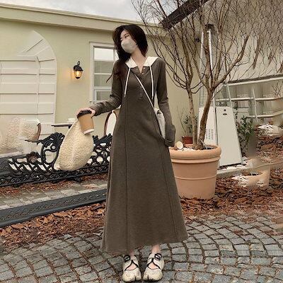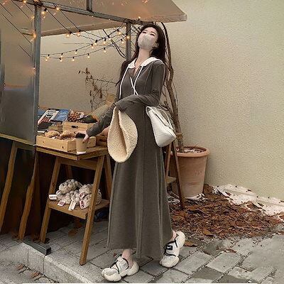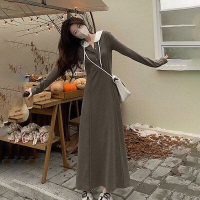ワンピース 春 長袖ワンピース女性 新型ウエスト収納長袖衛衣スカート膝丈スカート