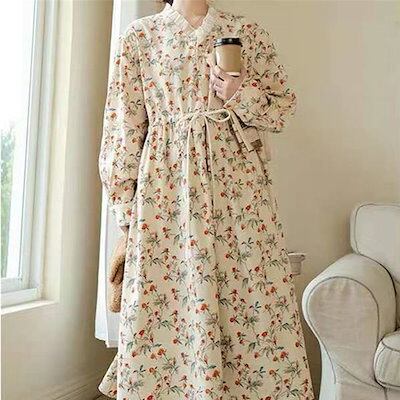 ワンピース 韓国ファッション フレンチレトロなデザイン感スカート花柄ワンピース