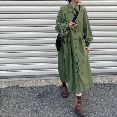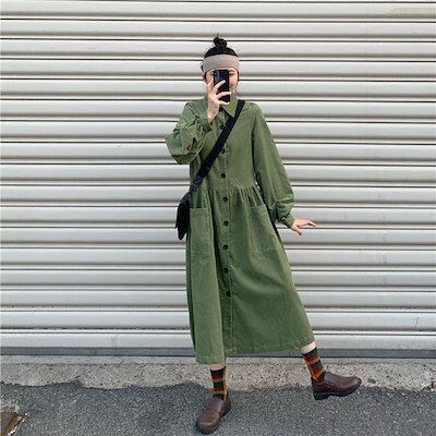 ワンピース レトロなシャツロングスカート女のデザイン感ロング丈ゆったりシャツワンピース