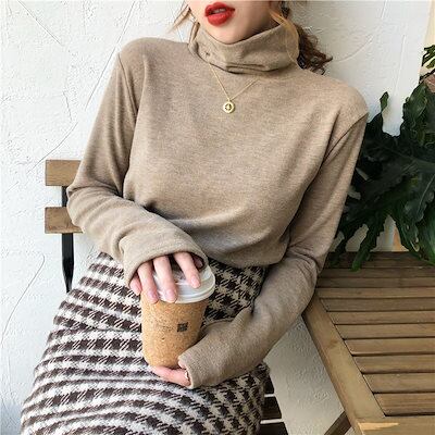 パーカー タートルネック中わた入り厚手ベースレイヤー秋冬用ウォームトップスレイヤードトップスファッション裏起毛ファッション Tシャツカットソー マウンテンパーカー