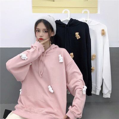 パーカー ゆったりスウェット韓国ファッション秋服薄いタイプ大きいサイズ連続帽子上着ゆったり着痩せ かわいいレイヤードトップス Tシャツカットソー マウンテンパーカー