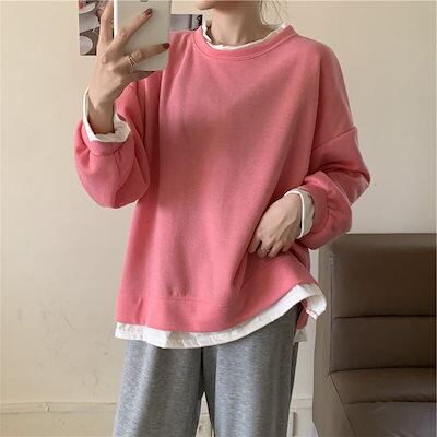 パーカー ゆったりスウェット2021韓国ファッション新型長袖上着ファッションins ゆったり かわいい 着痩せレイヤードトップス Tシャツカットソー マウンテンパーカー