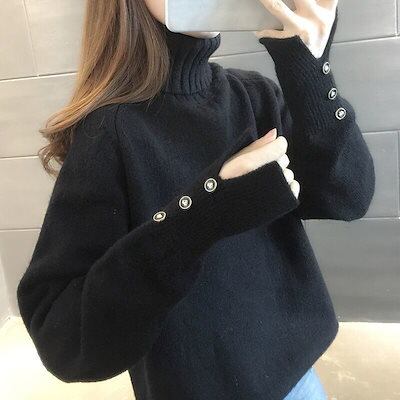 カシミヤタッチ ベーシックニット タートルネックニット 厚手 汎用性が高い ニットカーディガン ゆったり シンプル ニットカーディガン